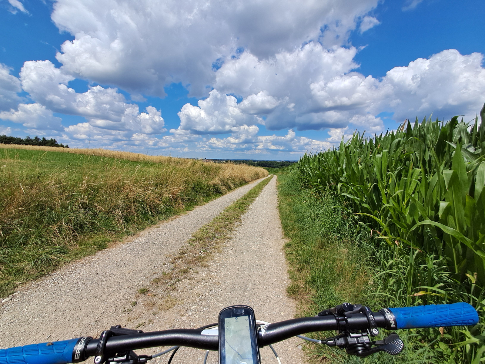 2) Der Abschnitt von Berglern bis Eichkofen verläuft unschön auf einer befahrenen Straße. Ich bin daher bis Tittenkofen