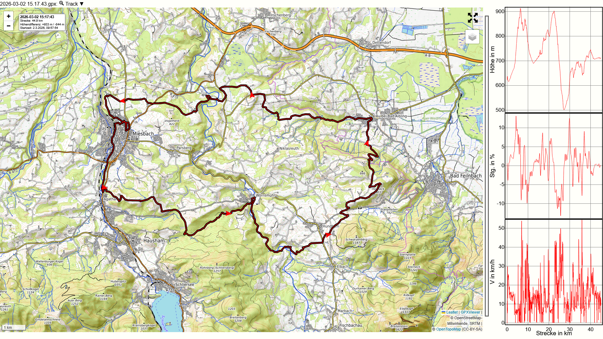 Moser Bike Guide 8 – Genußtouren Oberbayern 2 – Tour 29 – Miesbacher Auer Berg-Tour versehentlich im Gegenuhrzeigersinn gefahren, was sich im nachhinein als Glück herausgestellt hat. Zum einen wurde so die fiese Rampe von Au nach Hocheck rauf vermieden. Zum anderen konnte der vereiste Abschnitt vor Wörnsmühl wenigstens abwärts gefahren werden.
