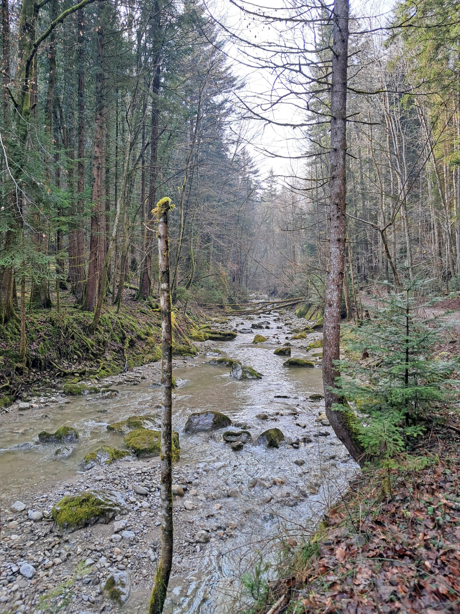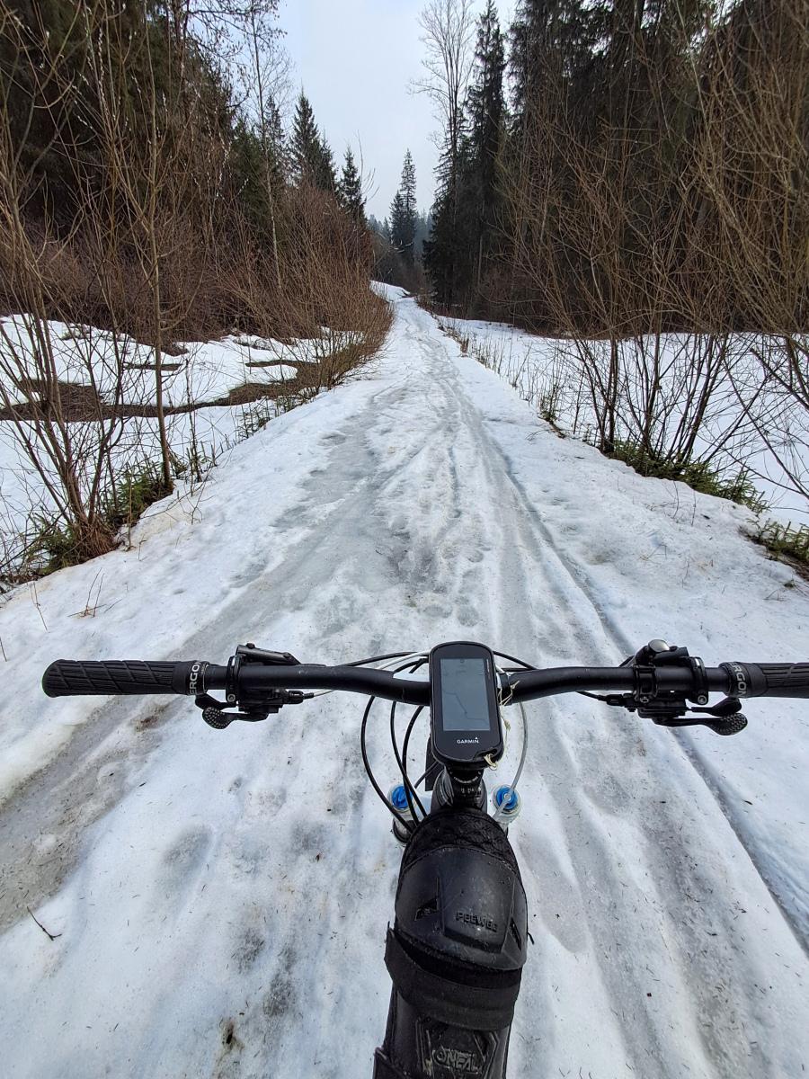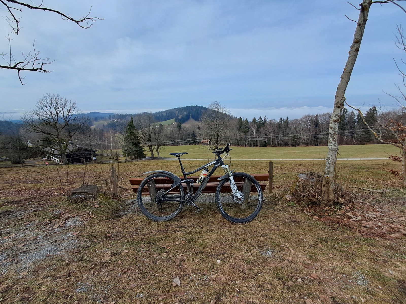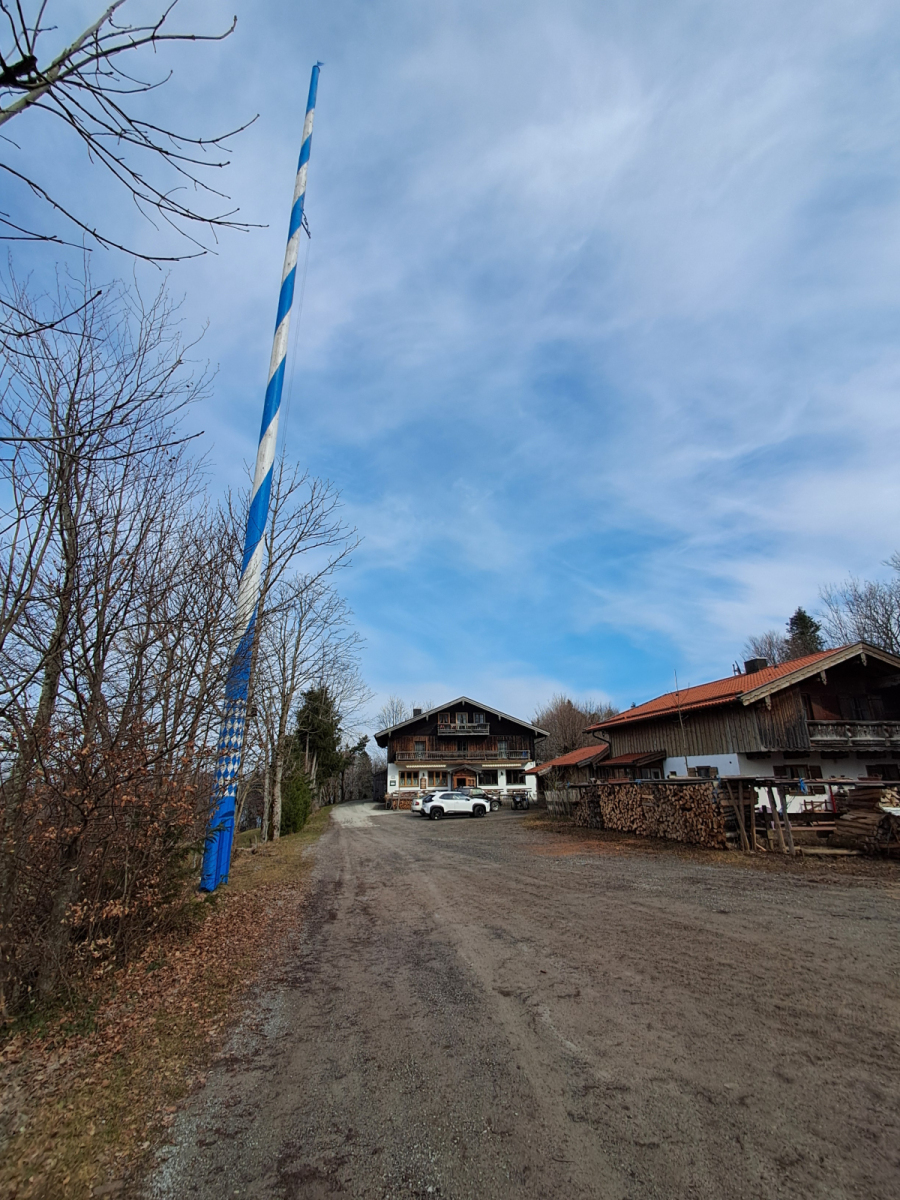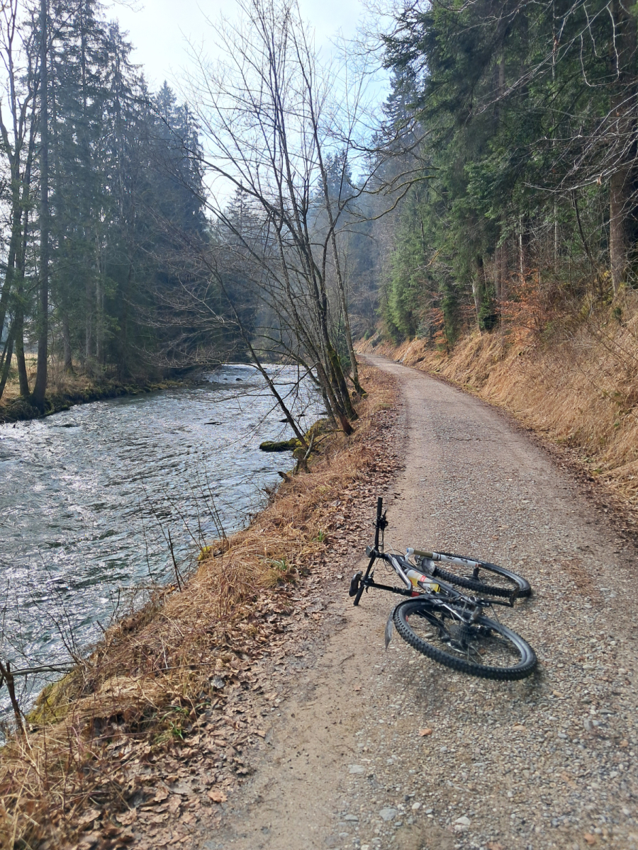 Moser Bike Guide 8 – Genußtouren Oberbayern 2 – Tour 29 – Miesbacher Auer Berg-Tour versehentlich im Gegenuhrzeigersinn gefahren, was sich im nachhinein als Glück herausgestellt hat. Zum einen wurde so die fiese Rampe von Au nach Hocheck rauf vermieden. Zum anderen konnte der vereiste Abschnitt vor Wörnsmühl wenigstens abwärts gefahren werden.