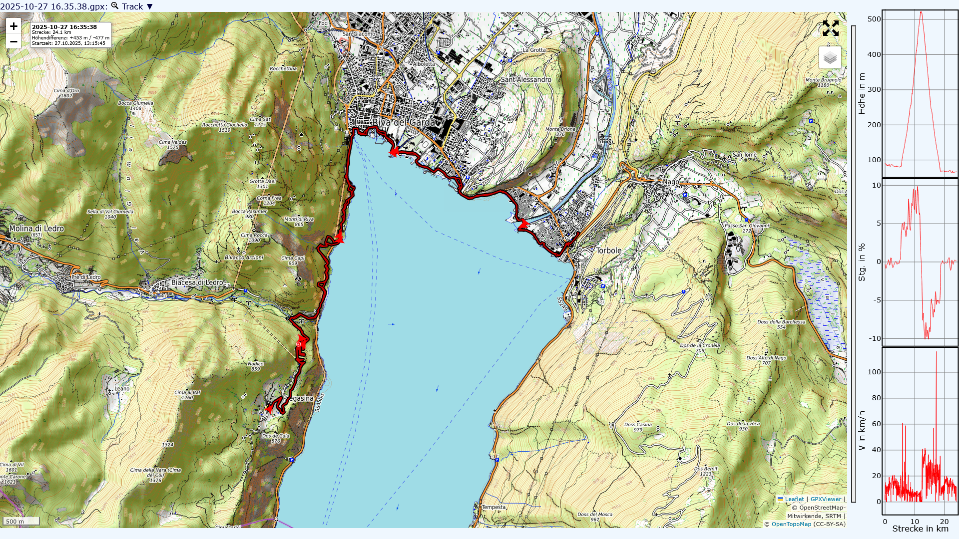Erste Nachmittagstour bei Ankunft in Torbole. Vorschlag von gooutbecrazy.de, allerdings zeitbedingt ohne Trailanteil.